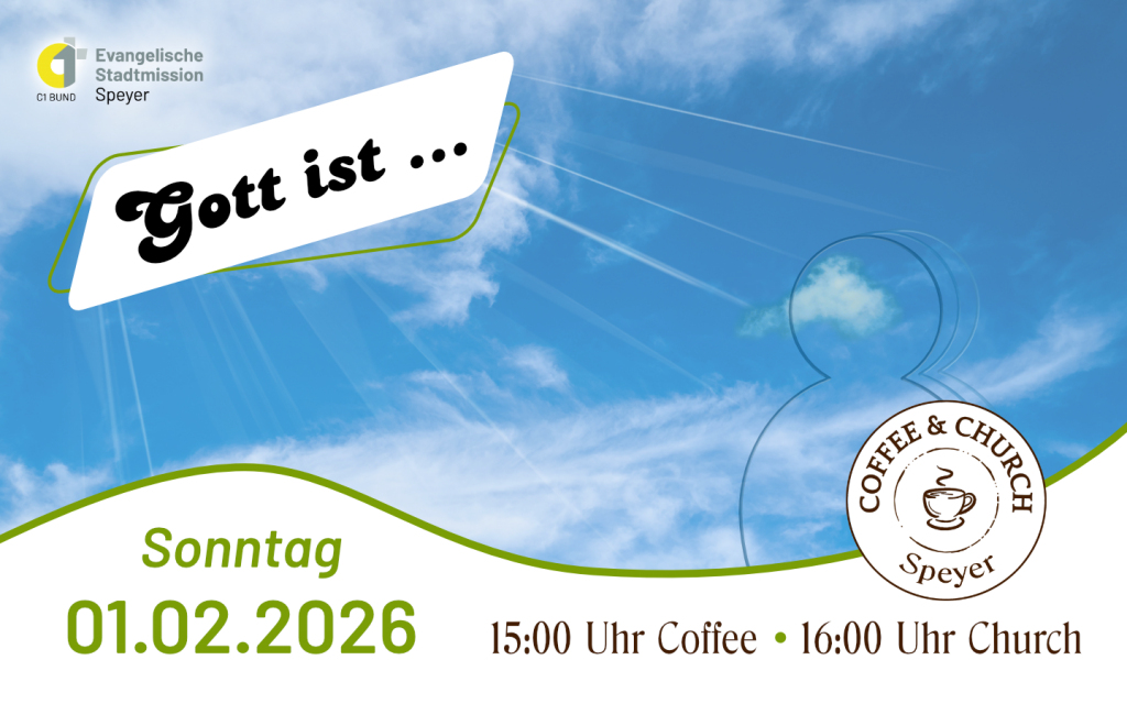 Bei Coffee & Church öffnen sich unsere Türen schon um 15:00 Uhr zum Zusammenkommen, um 16:00 Uhr geht es dann los.